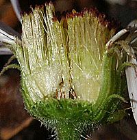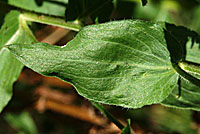 | New England Aster likes meadows in Ponderosa Forests and in canyons along intermittent streams in the montane zone. The specimen here was growing in Valle Canyon at 8,800 feet September. The plant has substantial leaves. | |||||