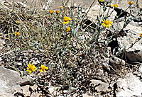 Ragleaf Bahia, Bahia dissecta, growing at the edges of a campground at Taylor Creek above Almont, Colorado, 8,100 feet, September 2, 2007. Growing on sandy |