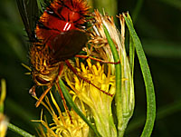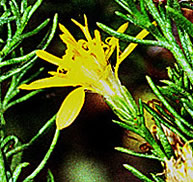 Yellow flowers of shrubby rabbitbrush cover the roadsides in fall in the mountain west. Rabbitbrush are woody shrubs on the banks of desert arroyos and along roadside ditches throughout much of the southwest. A number of species occur, the most common being nauseosus. Only disc flowers are present. Chrysothamnus means "golden shrub". Ericamera is greek for heath like leaves.