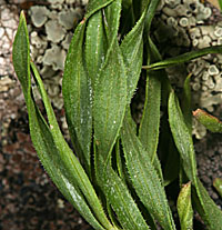 | This specimen of pulchellus was growing in the desert terrain about 10 miles east of Socorro, New Mexico in sandstone and shale barrens. The phyllaries on the side of the flowers and the tiny teeth on leaf margins clearly distinguish this species from nauseosus. | |||||
