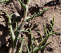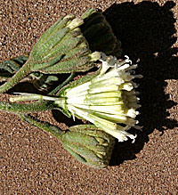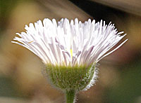 | Chaenactis stevioides (Greek, chaino -gape, and aktos, rays ) is a desert flower. The Chaenactis genera is found in deserts throughout the southwest. The above specimen was growing on sandy soil at 4,500 foot elevation just north of Deming, New Mexico. Chaenactis is found in open deserts, where visibility is measured in tens of miles and open terrain stretchs to the horizons. | ||||