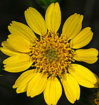 Bahia dissecta is a bright yellow fall blooming foothills composite. Plants height is about 0.5 meter. Observed in gravel soils along Taylor Creek upstream of Almont, Colorado, in Waldo Canyon West of Colorado Springs, and in the Jemez Mountains of New Mexico. Bahia is a late blooming composites. It likes gravel soils at the edges of mixed conifer or Ponderosa forests. Specimens observed grow on soils formed by granite or volcanic outwash. Bahia dissecta can bring memories of boots crunching on gravel, of mountain bikes drifting down backwoods trails, or of off road bikes climbing or attempting to climb steep ridge trails. When Bahia dissecta is blooming fall weather is here and winter is coming soon. |