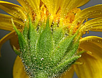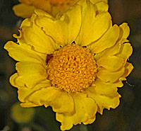 | Helenium (named for Helen of Troy) hoopsei is a substantial, moisture loving, mountain wildflower. Overall plant height can exceed a meter. Specimens have been observed in meadows at Cedar Breaks National Monument, Utah at 10,400 feet, in mountain meadows near Silverton, Colorado at 11,500 feet, and in moist meadows in the Jemez Mountains of New Mexico at 8,000 feet. | ||||