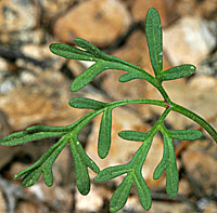 | Dyssodia (Gr. disagreeable odor) pentacheata (Gr. five bristles) strongly resembles Erigeron. The specimen here was blooming at The Sonoran Desert Museum just west of Tucson, Arizona at an elevation of 3,000 feet on April 20. Kartez lists this species as Thymophylla pentacheata. | ||||