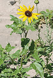 Growing in disturbed ground along a roadside in Los Alamos, New Mexico, at an elevation of 7,200 feet. These sunflowers are prolific along roadside in the west and southwest. |