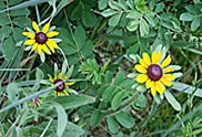 Black Eyed Susan, Rudbeckia hirta, growing in a moist, partially shaded area next to willows lining the ditch feeding Rampart Reservoir, Colorado. Hirta means hairy. |