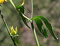 | Cutleaf Coneflower, Rudbeckia lacinata, likes moist areas. This specimen is growing on the margin of a marshy area of old beaver ponds in Guaje Canyon in the Jemez Mountains of New Mexico at an elevation of 8,700 feet. Aconitum columbianum (monkshood) is growing nearby. | |||||