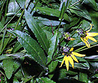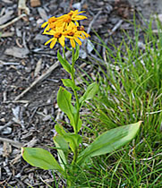 Clasping Butterweed, Senecio amplectens (winding around), growing on the South edge of a meadow near the Continental Divide Trail North of Pagosa Springs, Colorado. Elevation is 11,600 feet. Just to the south are Picea engelmanii groves near timberline. |