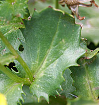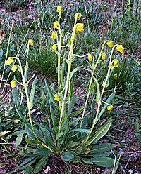 | Thousand lobed groundsel, Senecio millelobatus, growing on the eastern slope (west facing slope) of Grape Creek, Wet Mountains, Colorado, 5,800 Feet,June 2, 2007. Plant height is 33 cm, flower width is 17 mm, rays 12, leaves basal and stem.,notched, toothed, length 40 mm, width 23 mm. | |||||