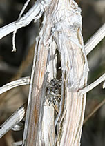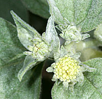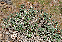 Reticulata means netted. Leather Leaf Goldeneye, Viguiera reticulata, growing on asandy bench in Mosaic Canyon, Death Valley, 1,520 Feet, March 16, 2007. These are very new flowers. Plant height is 76 cm, leaves opposite, lower stem woody, leaf length 50mm, leaf width 27mm. |